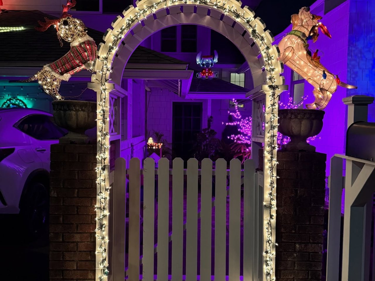 Our home is fully decked out for the season, just the way he’d love it: pigs flying to the North Star, Santa cruising in a red wagon, Stitch up on the roof, snowmen, and all the fun light-up decor that makes this time of year feel extra special.